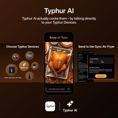 Typhur 8QT Sync Air Fryer with Built-in Wireless Meat Thermometer, 9-in-1 Smart Non Toxic Ceramic Airfryer for Quick Easy Meals, 450°F Max, Cooks 6lb Whole Chicken, Dishwasher Safe